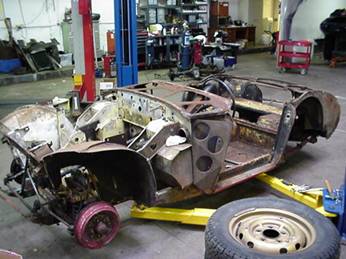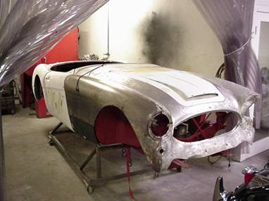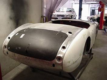 Healey. Now that the body has had all the rust blasted away there are quite a few