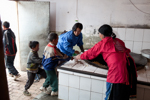 Summer of the Sun School children racing into the kitchen to get their lunch. The school does not have a cafeteria so the children eat outdoors.