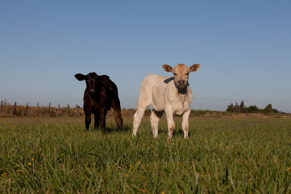 Mom teaching her just born calf to walk