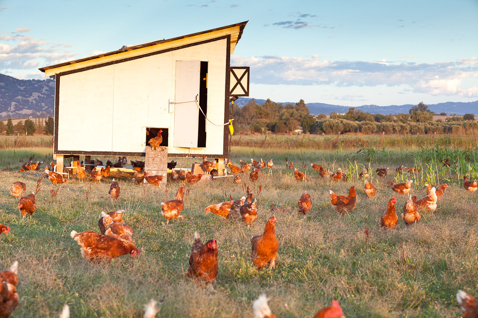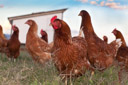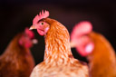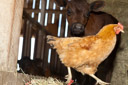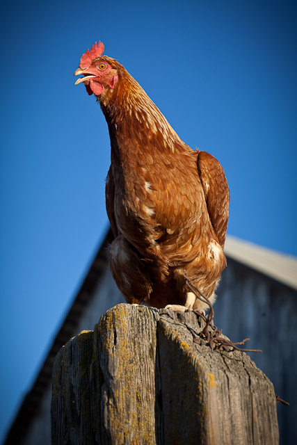 Hen lining up to peck the eye out of her photographer