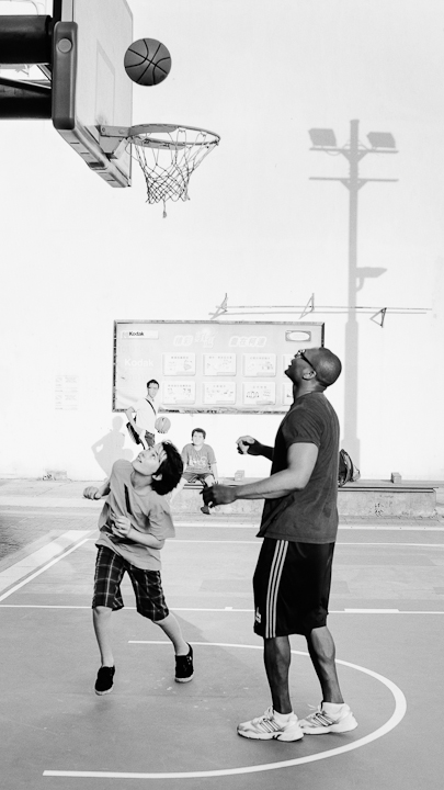 Katharine shot her first two baskets on a full sized court and both were swishes
