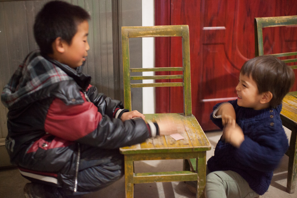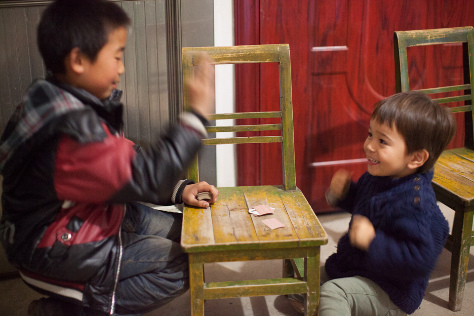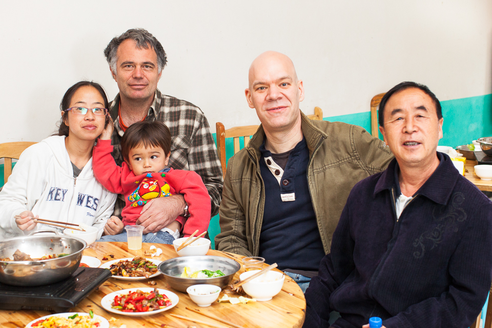 YiFu, He Jia Yi, YiMa, and He Jia Fu at thier kitchen table / coal stove - we stayed with them this year in their new house and they were great hosts