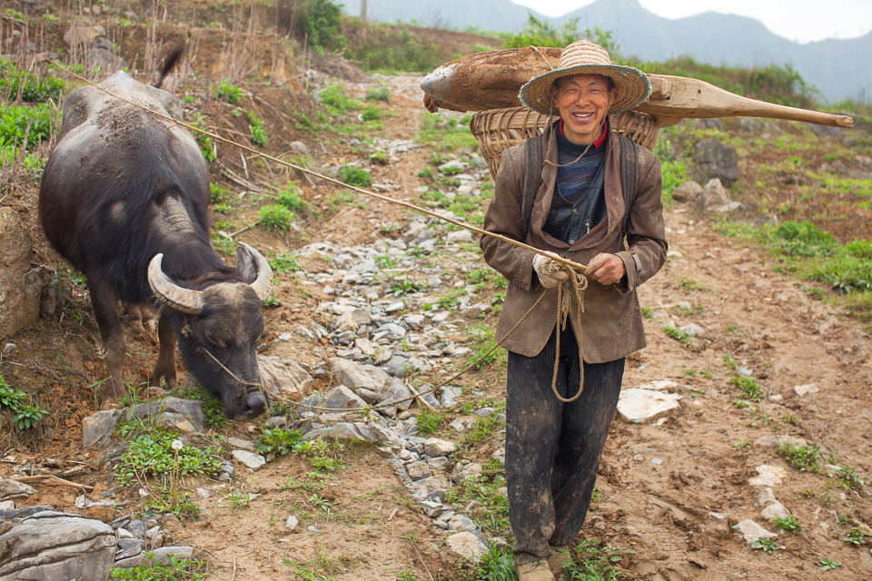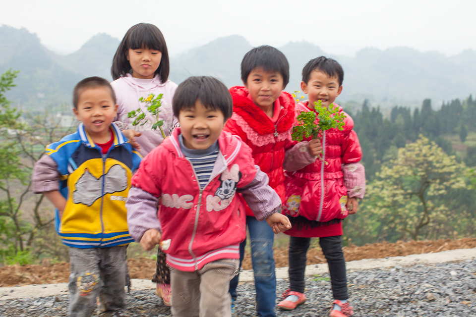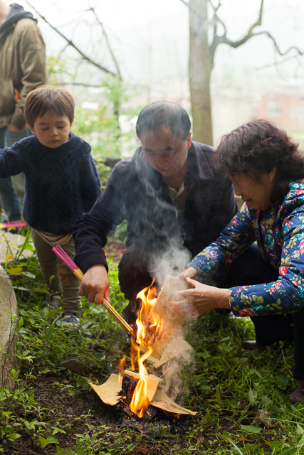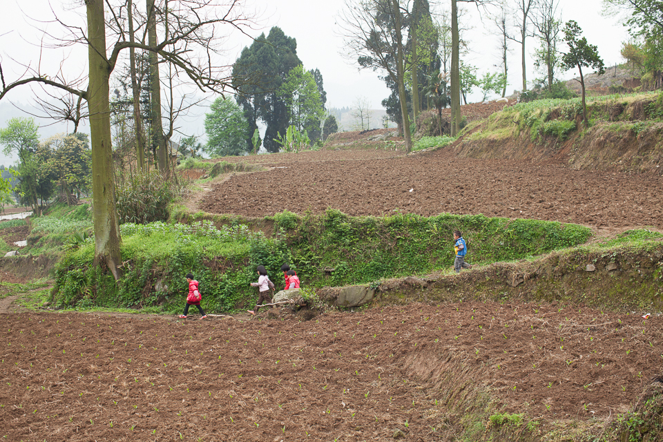 He Jia Xing, He Jia Fu, He Jia Yi helping YiFu ( their grandpa / Daisy's Mom's cousin's husband ) plant Sorghum.