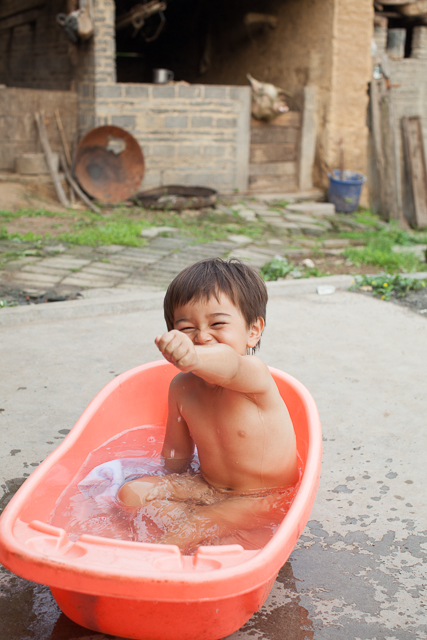 Yuan Yuan ( Lin Lin's daughter ) changes her cloths 5-6 times per day, and does not hesitate to climb mountains wearing pink shoes