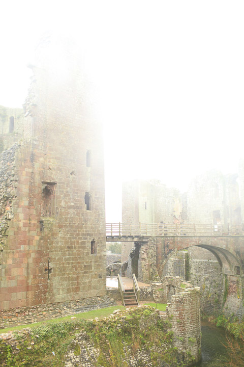 A castle in a Pembrokshire hailing gale. The wind blew the door off the ticket office and they gave us free admission.