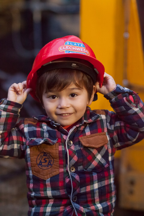 Getting off the mine train inside the Blaenau Ffestiniog slate mine. The mine includes 25 miles of tunnels connecting 250 caverns arranged in 15 levels.