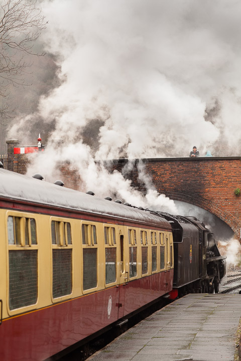 These big coal burning engines are surprisingly fast. We chased and raced them all over Wales, catching this in Llangollen.