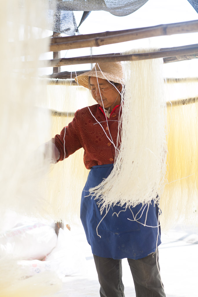 Making rice noodles an outdoor factory in a field