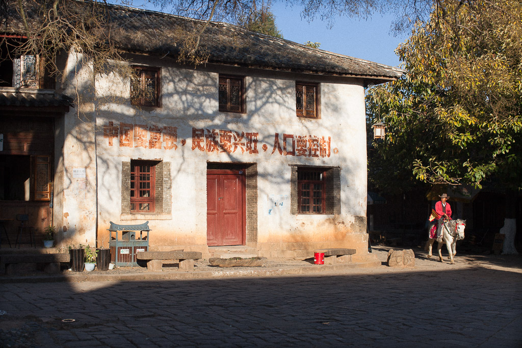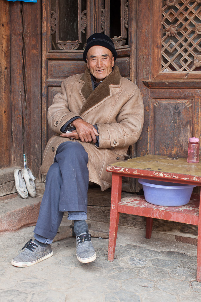 Duan Xiong Qui grew up in the guesthouse where we stayed and he is now the landlord. He is a lively and generous man giving gifts such as fresh carrots to everyone in town and for some reason wanted me to photograph him writing in front of his house. He said he is not yet retired and still works as a farm laborer.