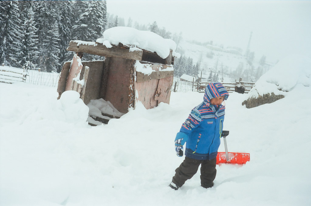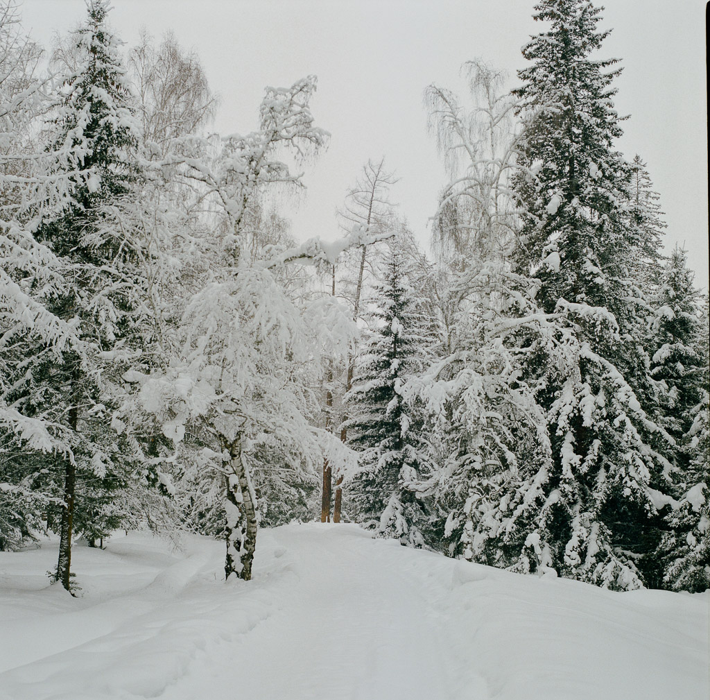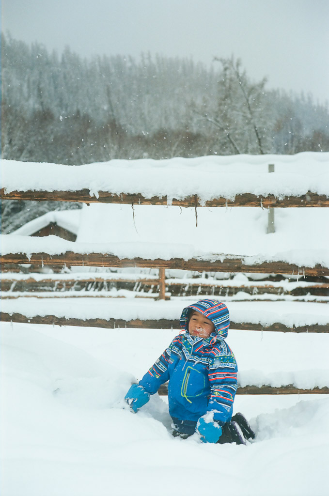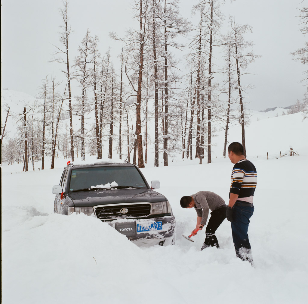 We had to dig our car out of deep new snow no less than 20 times on the road from BaiHaBa to HaBaHe (501c Ektar 100)