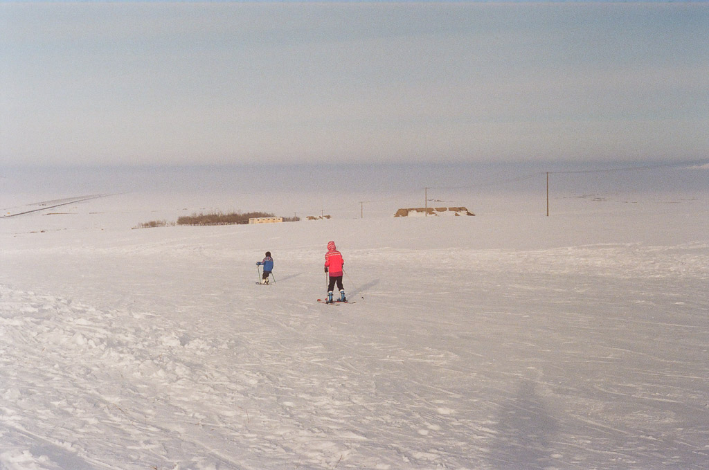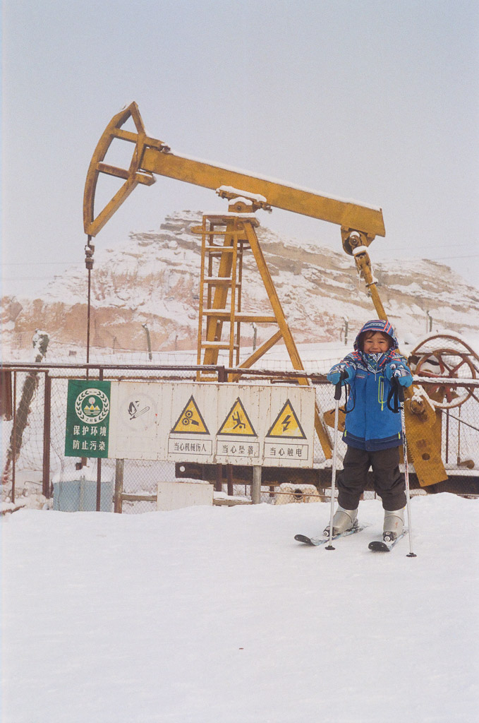 Skiing in the oil field in the middle of the GuErBanTongGuTe desert that is KiLaMaYi (M2 Portra 800)