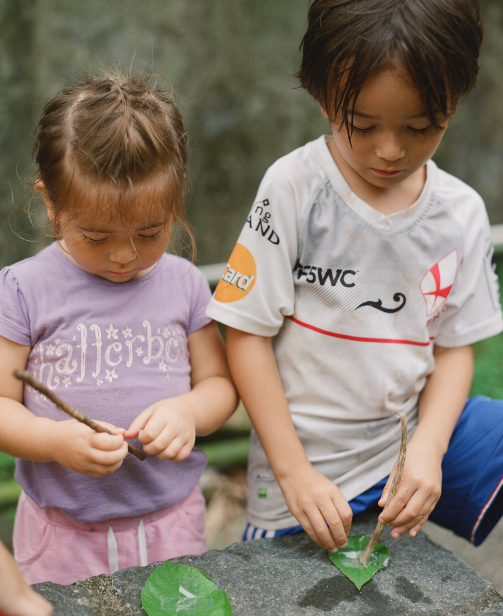 Mok Tse Che ̶ Valorie and Brian making boats from leaves (Kodak Portra 800)