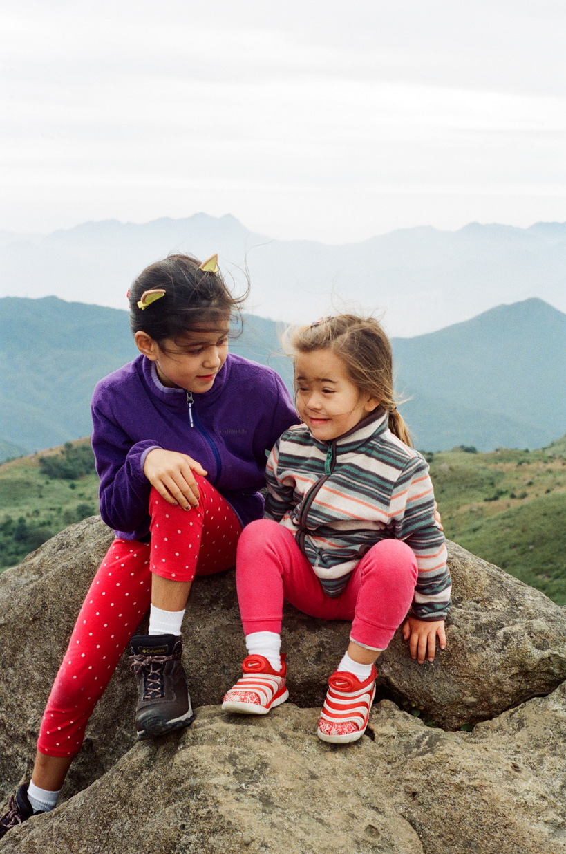 bl Family pages2017Sai Kung, Feburary 2017Mok Tse Che Mok Tse Che ̶ Jade and Valorie in the mountians above our house (Kodak Portra 800)