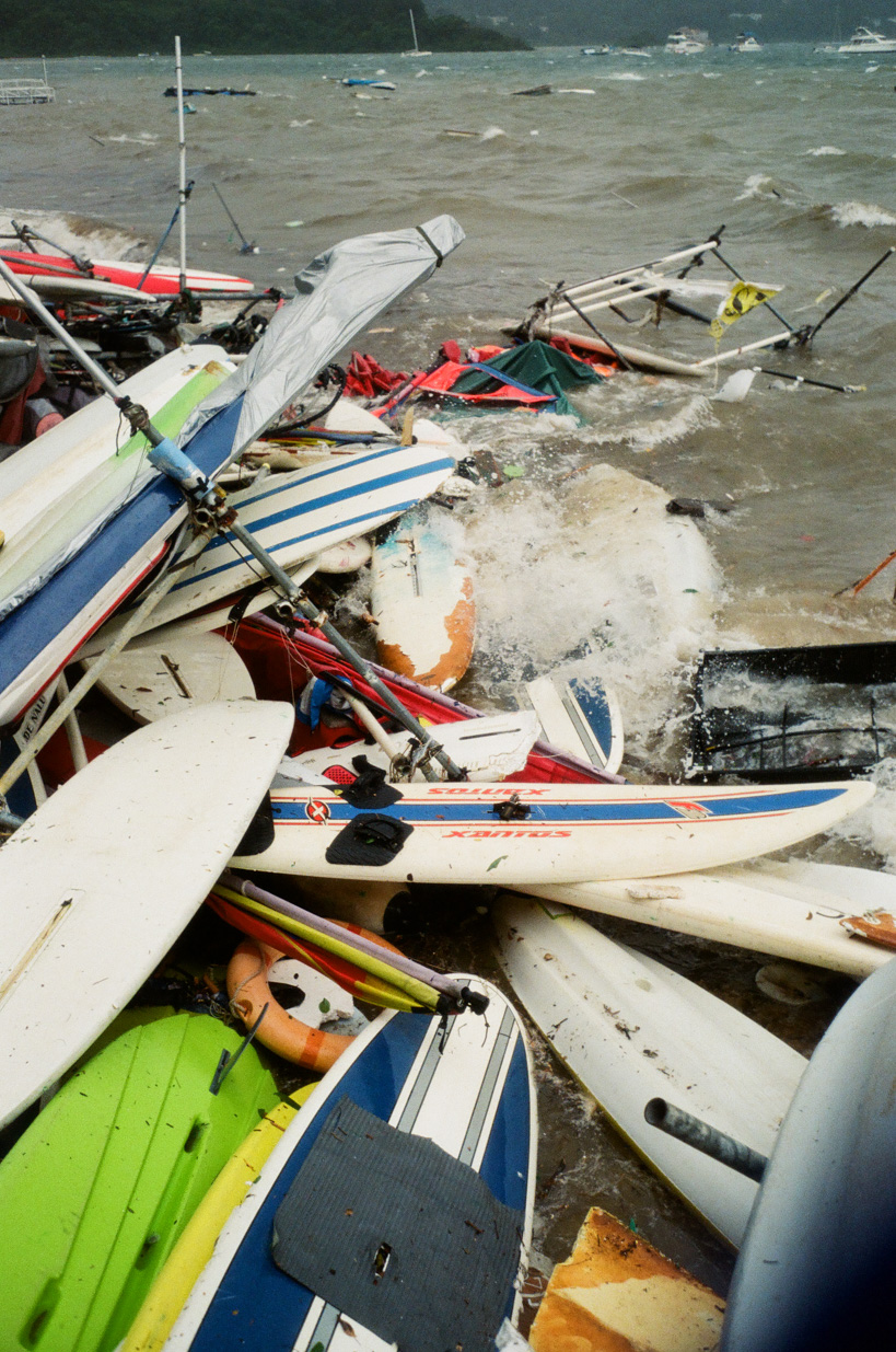 WanChai ̶ Hong Sheng temple, built into a WanChai rock on the beach 170 years ago, respects the God of the Sothern Sea. Now the temple sits on the map one kilometer from the sea, elevation 145 ft. Increased distance is a result of reclamation and increased elevation a result of elevation on modern maps depicting average height of surrounding buildings. (Ilford Delta 400)