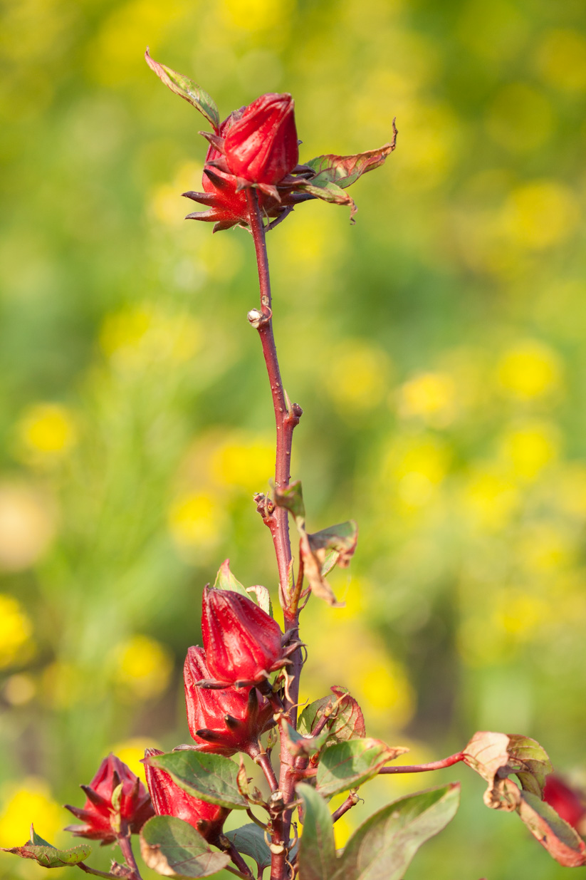 Tian Ge's farm ̶ hibiscus on a backdrop of rapeseed