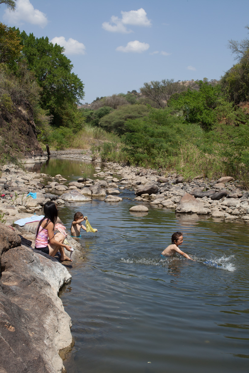 bl Family pages20181801 Ethiopia Family PgEthiopia, Omo National Park Ethiopia, Omo National Park ̶ Mui river bath and cloths washing, Daisy, Valorie and Brian