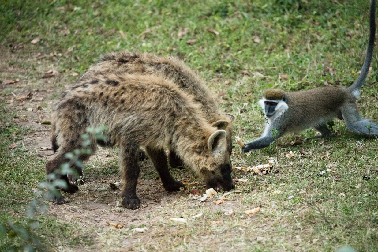 bl Family pages20181801 Ethiopia Family PgEthiopia, Yirga Alem, Aregash Lodge Ethiopia, Yirga Alem, Aregash Lodge ̶ spotted hyenas and a vervet monkey