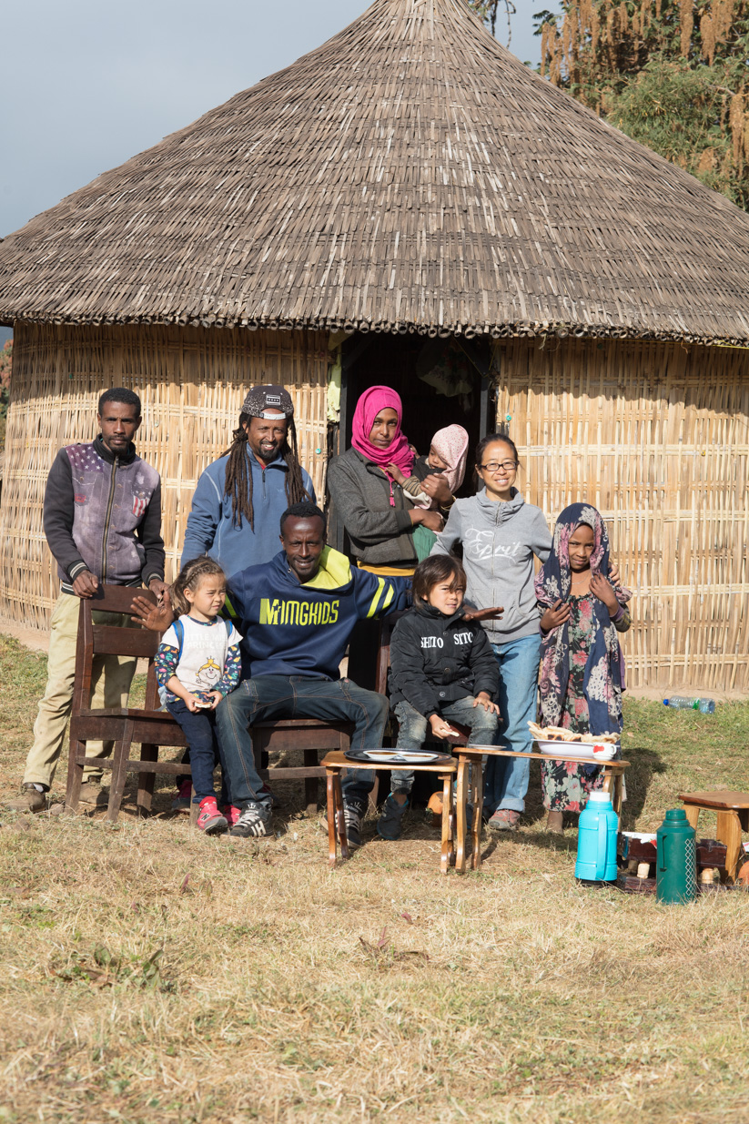 bl Family pages20181801 Ethiopia Family PgEthiopia, Herale ( near Rira ) Ethiopia, Herale ( near Rira ) ̶ Mohamed, Valorie, Midexa, Fatara, Soiba, Brian, Daisy and Malia in front of our house in their pasture with the usual honey, bread, tea and coffee that we ate all week