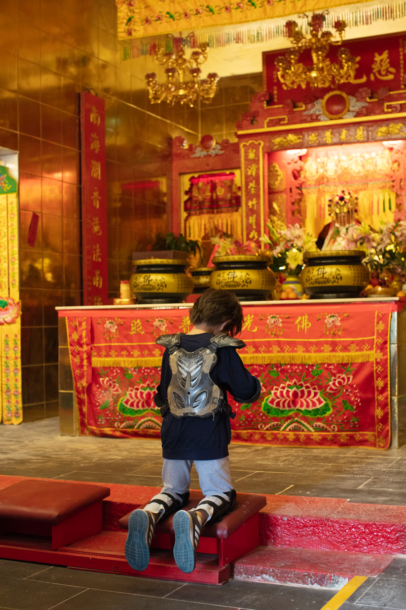 Shang Shui ̶ Brian wearing body armor in a temple