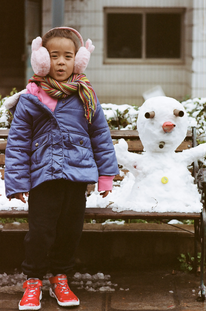 bl Family pages20202002 GuiYangGuiZhou, TongMuLing GuiZhou, TongMuLing ̶ Valorie with snow man made from fireworks (Kodak Portra 160 / F1)