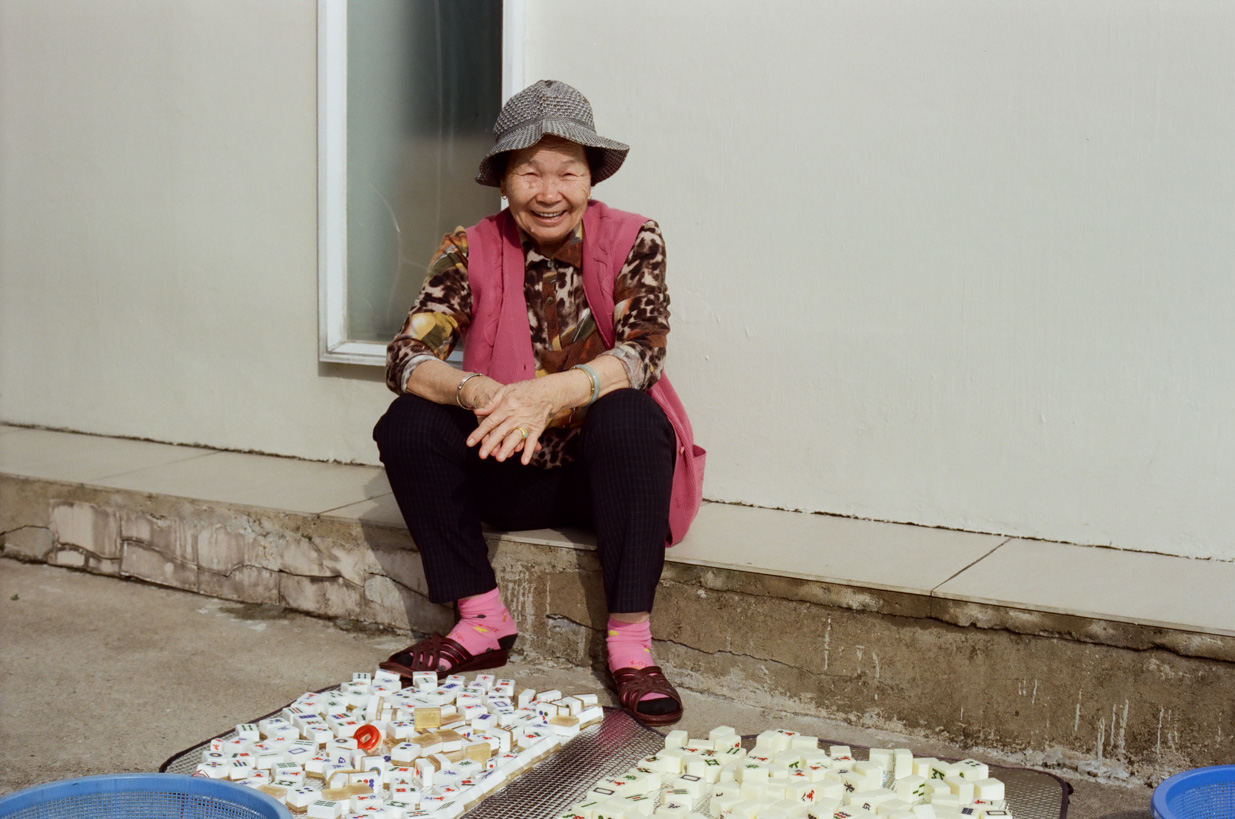 bl Family pages20222202 Hing Keng ShekHing Keng Shek Hing Keng Shek ̶ Mrs Lau cleaning her Ma Jang tiles before New Year (Kodak Vision 3 250d, SL2,50/2)