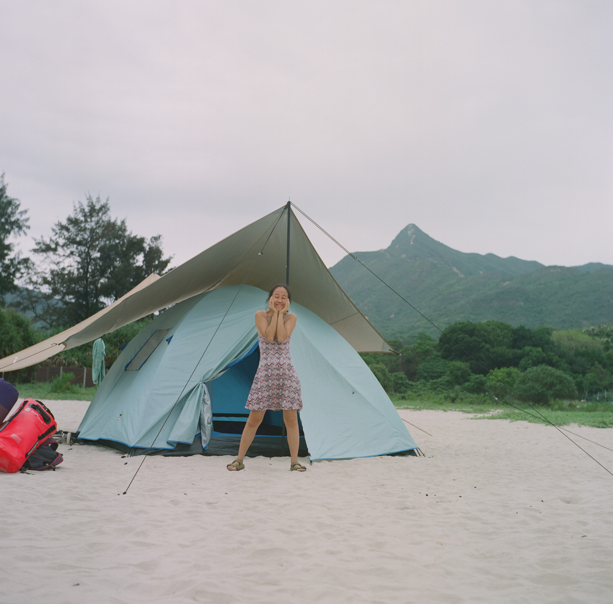 bl Family pages20222205 Hing Keng ShekDa Lang Wan Da Lang Wan ̶ Daisy and our new tent (124G,Fuji 160NS @100, no hood)