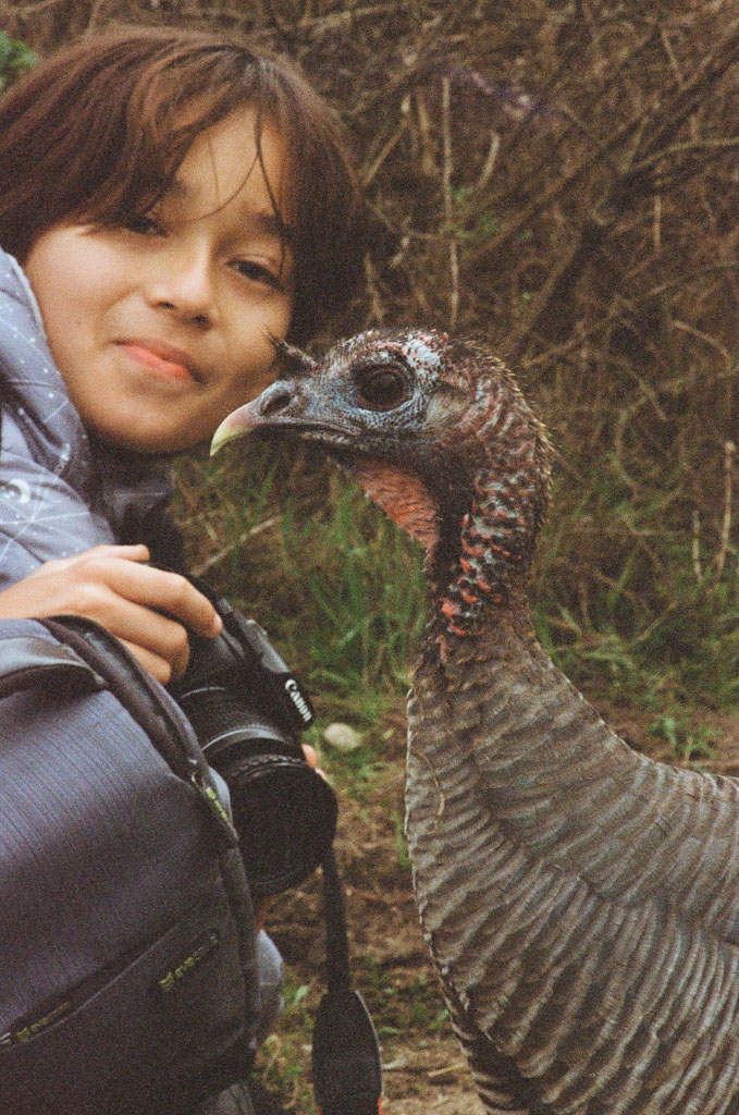 bl Family pages20232023 January, USAPt Reys, California Pt Reys, California - Brian and a wild turkey (Kodak Portra 400, SL2,135/2.8)