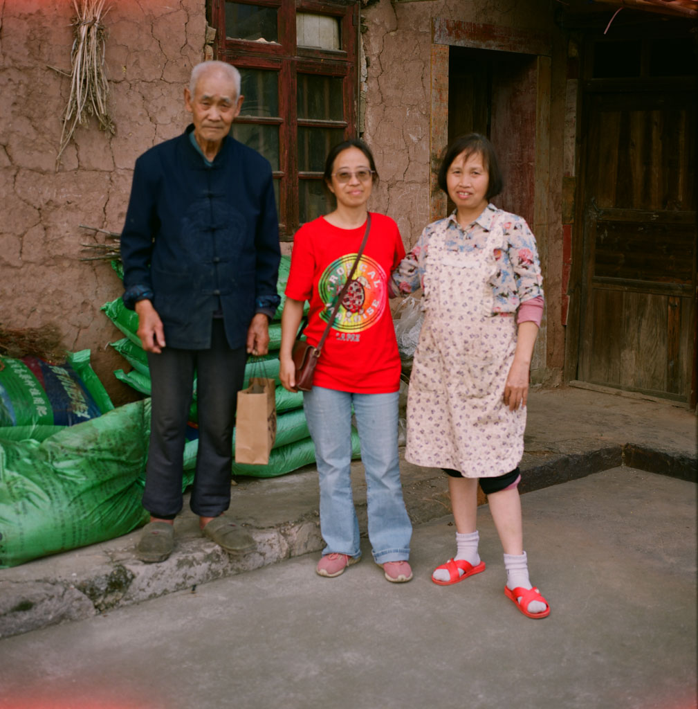 bl Family pages2023Gui Zhou, April 2023GuiZhou, MaChang GuiZhou, MaChang - Da Jiu 王文达, Daisy, Ju Er Jie 王庭菊 in front of Da Jiu's house (Fuji 160 NS, GF670)