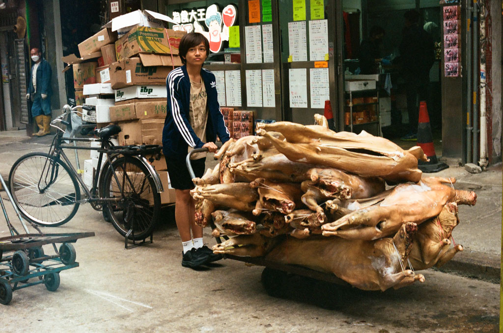 Sham Shui Po - Brian with a cart of dried dogs (Kodak Ektar, R5, 50/2)