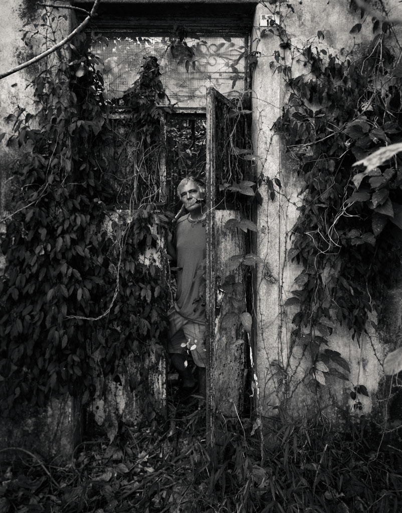 黃竹洋 Wong Zhu Yang Village ( yellow bamboo sea village ) Cantonese: Wong Chuk Yeung - Me in door with leaves, (Holder 15B, Shanghai GP3 100, left in holder almost a year, D76 1+1, Fujinon SWD 75/5.6, Incident F13/8, shot as metered)
