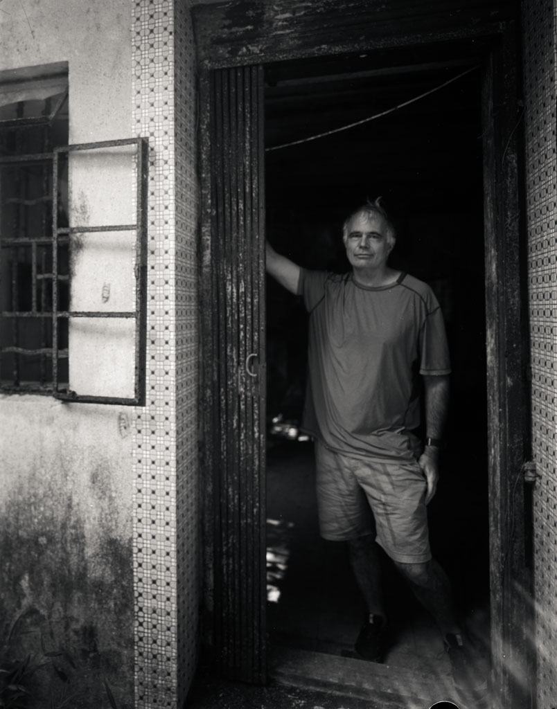 黃竹洋 Wong Zhu Yang Village ( yellow bamboo sea village ) Cantonese: Wong Chuk Yeung - Me in door, (Holder 14B, Shanghai GP3 100, left in holder almost a year, D76 1+1, Fujinon SWD 75/5.6, Incident 1/20 Sec, shot 1/15 sec )
