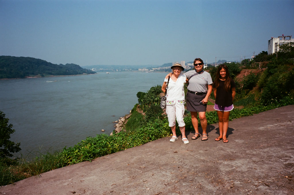 bl Family pages20252510 GuiZhouSiChuan, ChangJiang SiChuan, ChangJiang - Mom, Joanne and Valorie - Finally arrived at the Yangzee river after driving from MaoTai down the ChiShui river (Kodak Ektar, IIIg, Nikkor 28/3.5)