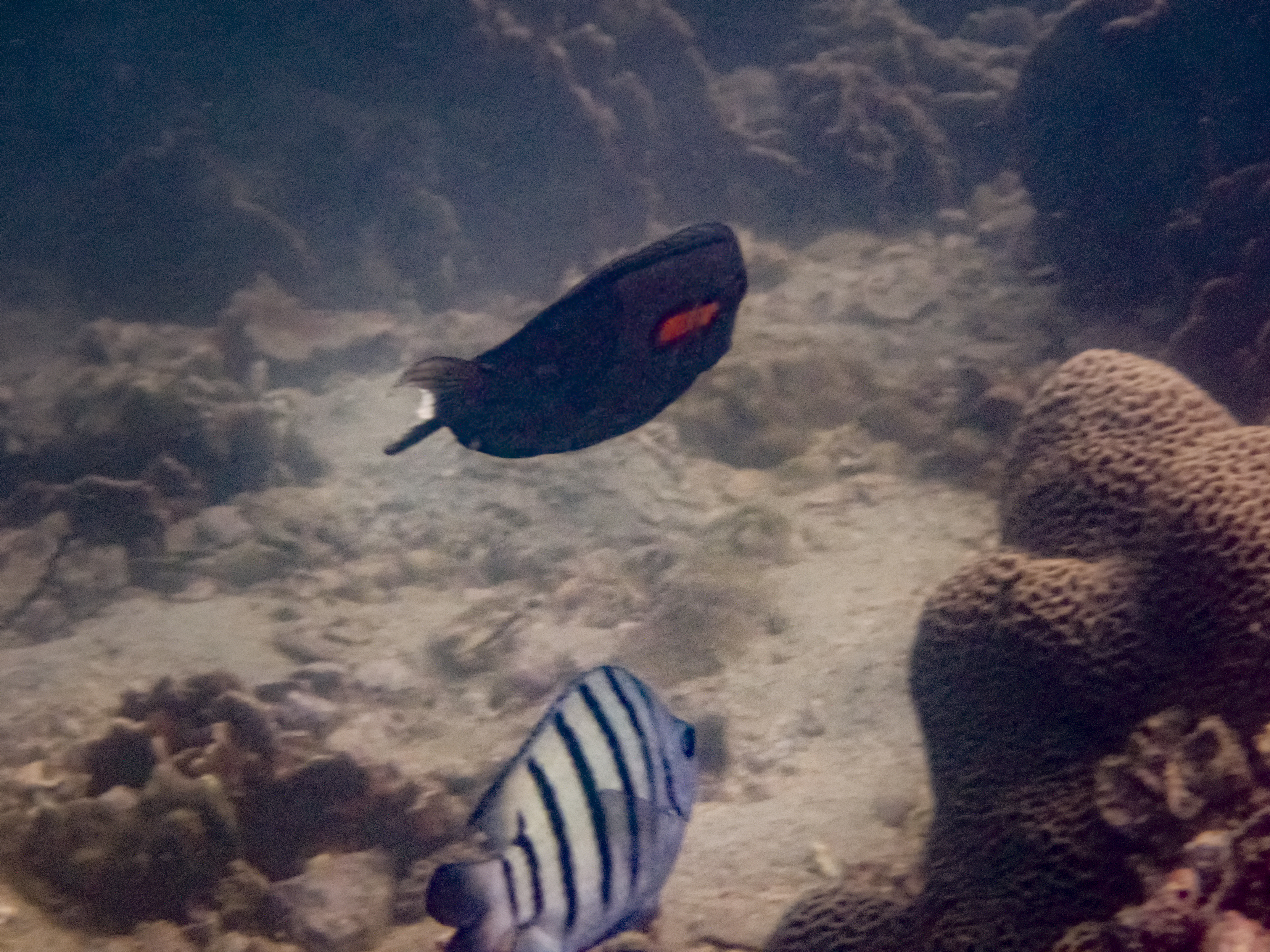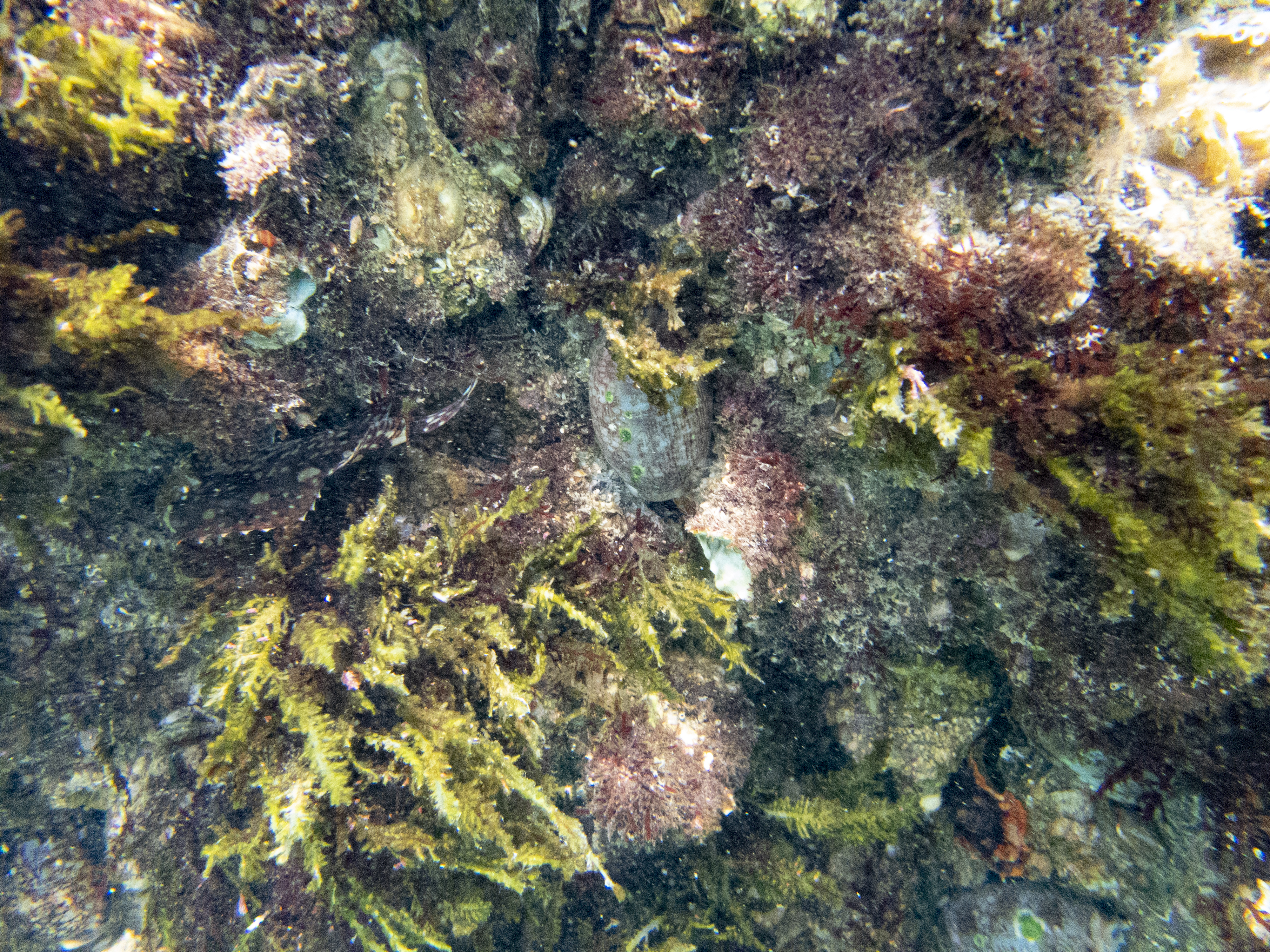 2021 May - West Sharp Island; Cawrie and some kind of weird spotted fish on the left that ran away before I could get a good photo