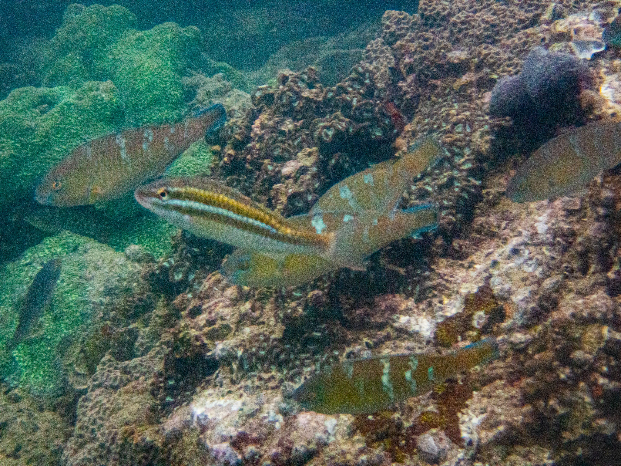2021 June - Shelter Island; Blue-barred parrotfish, Pointed goatfish